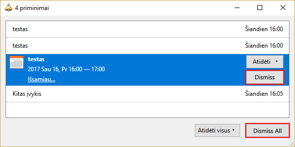 > priminimą, tai yra, kažkur pačiame kalendoriuje pažymintį, kad šis